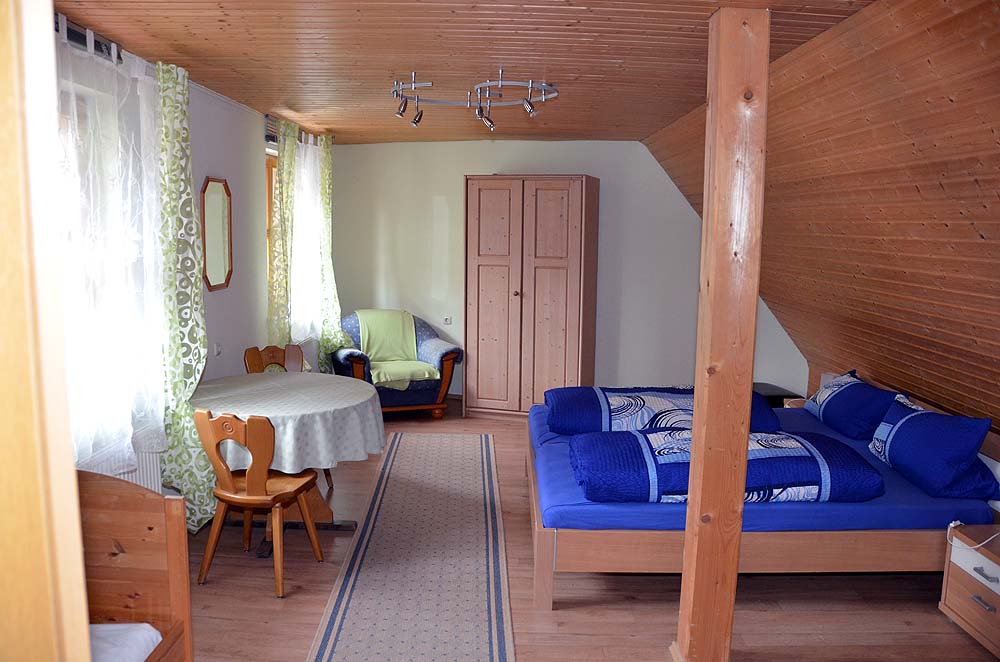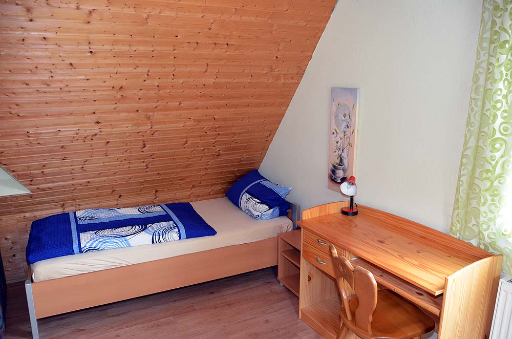 Das Ferienhäuschen hat 2 Schlafzimmer, einen geräumigen Wohnbereich, Küche, Dusche mit WC, und einen Balkon.